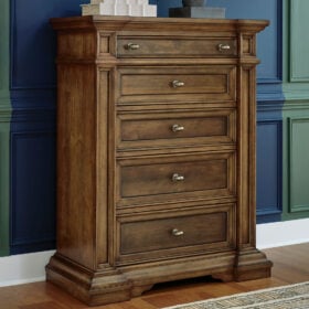 Time-honored style, made for today’s home. This panel Series pays homage to traditional aesthetics, with a richly detailed finish incorporating a sense of stately elegance. A substantially-scaled headboard and moulding details round out the piece in graceful fashion.