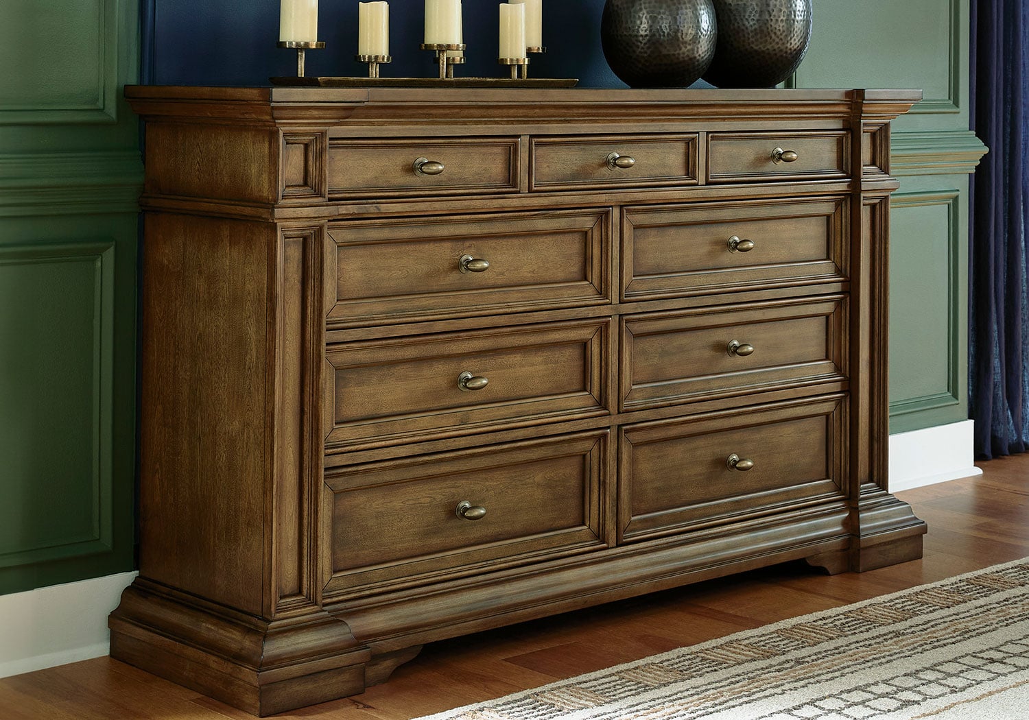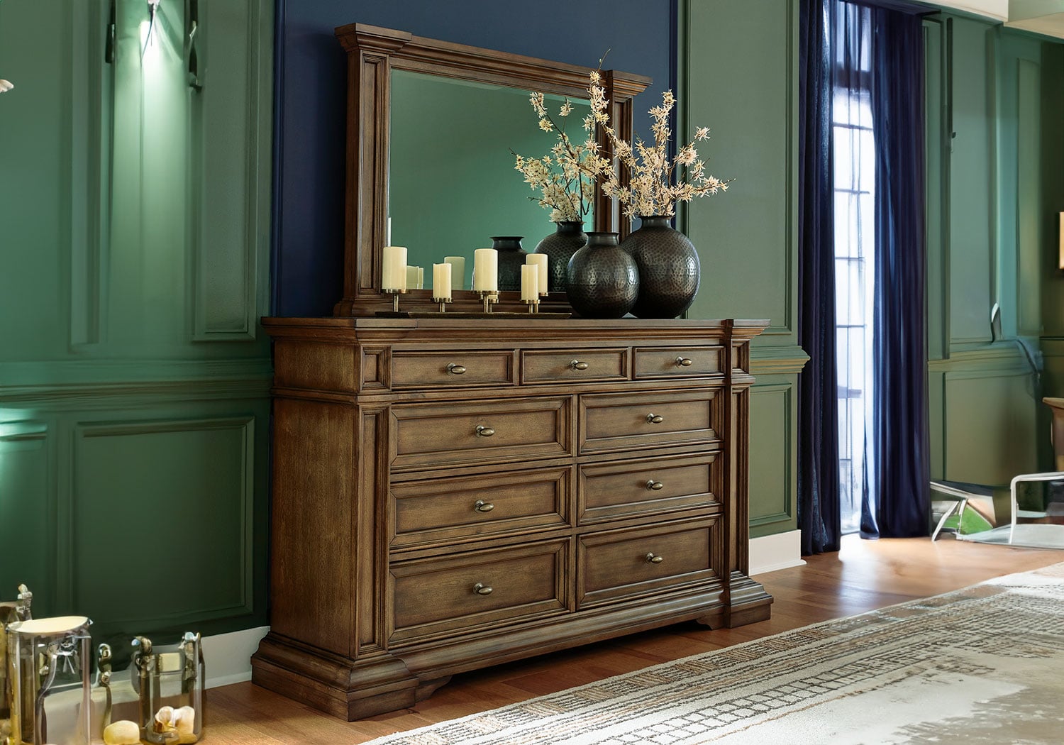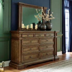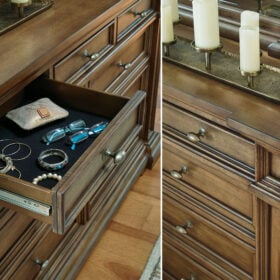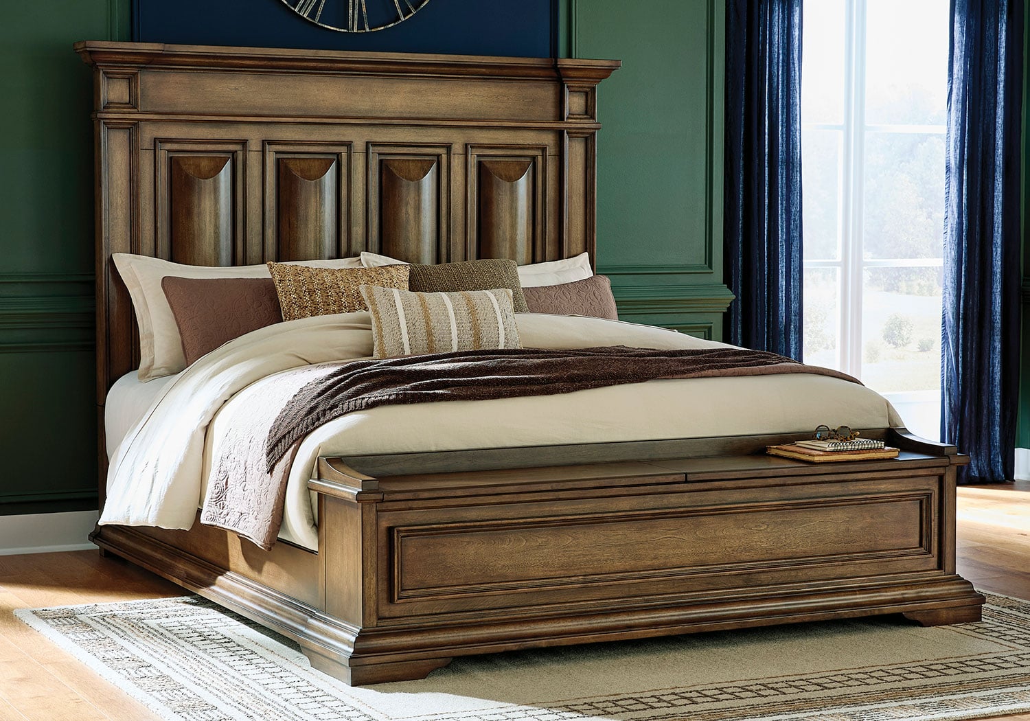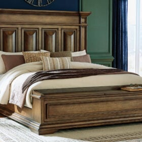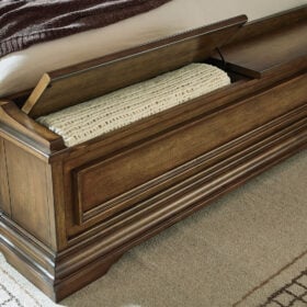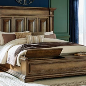 Time-honored style, made for today’s home. This panel storage Series pays homage to traditional aesthetics, with a richly detailed finish incorporating a sense of stately elegance. Included storage in the bench-style footboard adds subtle function. A substantially-scaled headboard and moulding details round out the piece in graceful fashion.