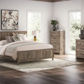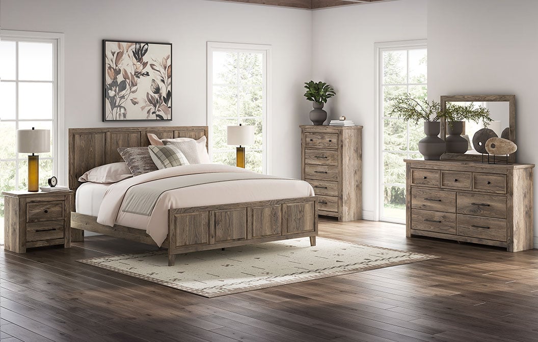 Classically chic. This panel Series marries traditional design with modern accents. Its deep brown finish recalls the authentic touch of hickory grain for a rich look and feel. Paneled details add delightful dimension. Sincere in its styling, this Series sets the scene for a warm, welcoming vibe in your bedroom.