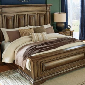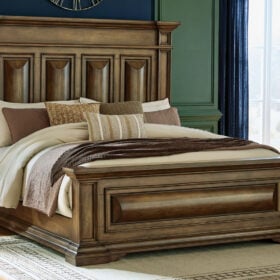 Time-honored style, made for today’s home. This panel Series pays homage to traditional aesthetics, with a richly detailed finish incorporating a sense of stately elegance. A substantially-scaled headboard and moulding details round out the piece in graceful fashion.