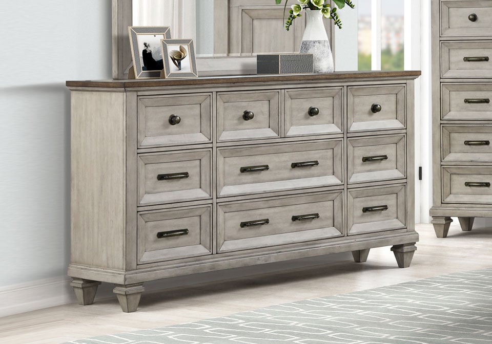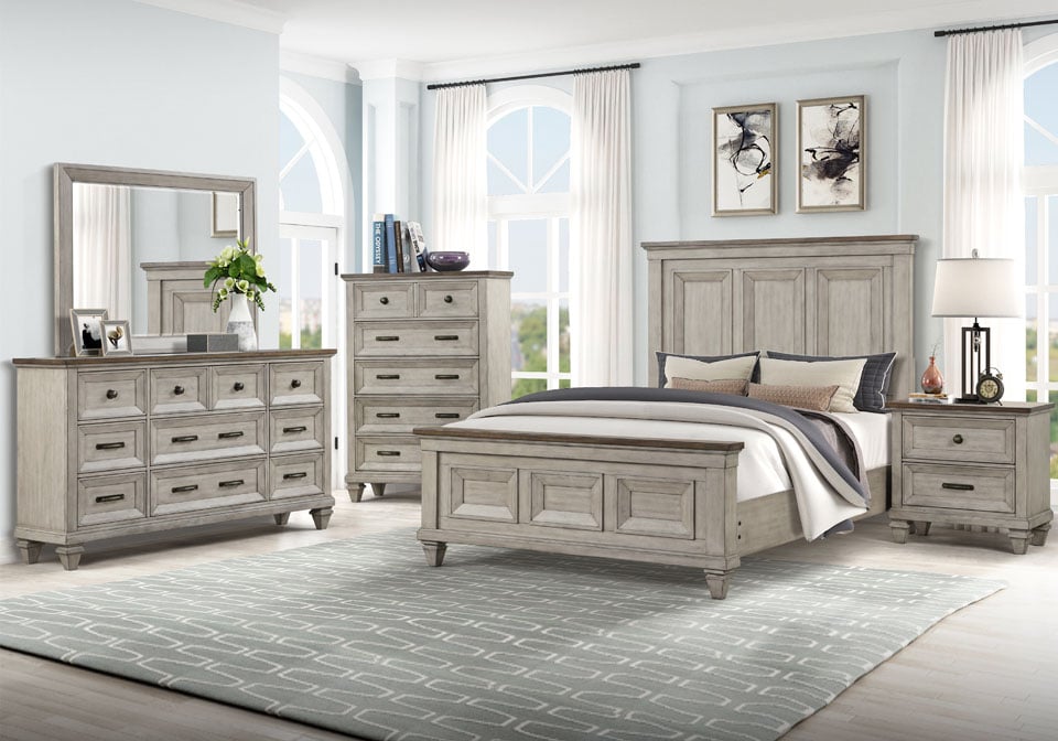 Bring timeless charm and relaxed sophistication to your home with this beautifully crafted bedroom series. Designed in a soft, weathered finish with a subtle two-tone look, each piece blends classic panel detailing with clean, modern lines. This elegant Series is perfect for both contemporary and traditional spaces, delivering in style, comfort, and functionality that will make your bedroom a true retreat.