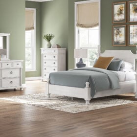 Taking a laid-back approach to casual traditional design, this artfully crafted poster Series features a handsomely hefty yet fashionably proportioned silhouette. Its rubbed antiqued white finish exudes a comfy, timeless appeal that’s sure to carry you away to a dreamy time and place. This easy-to-love look makes just the right statement.