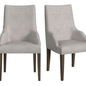 Enhance your dining space with the Yellowstone Host Chairs, featuring sleek lines, soft gray upholstery, and tapered wooden legs. Their supportive design combines comfort and elegance, perfect for everyday meals or entertaining guests.
