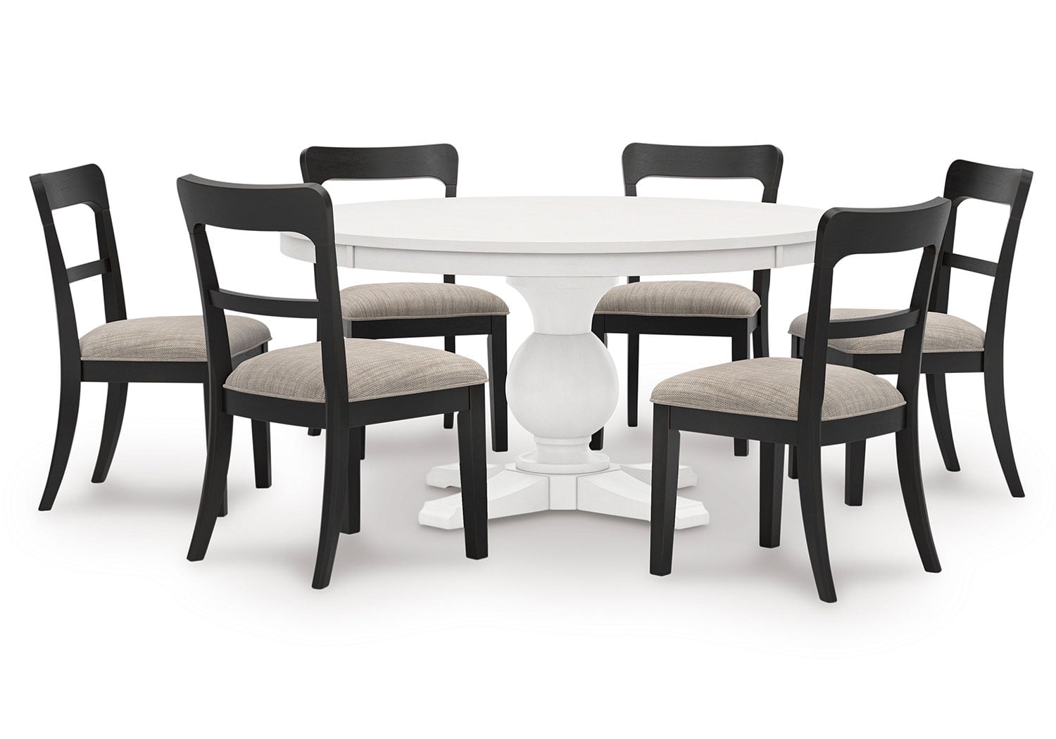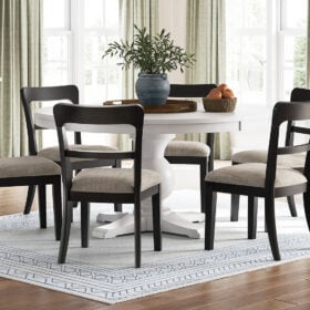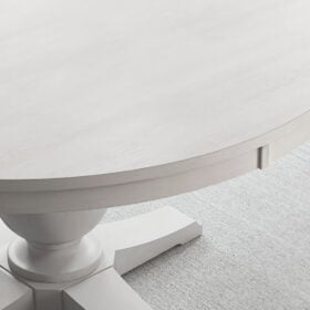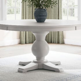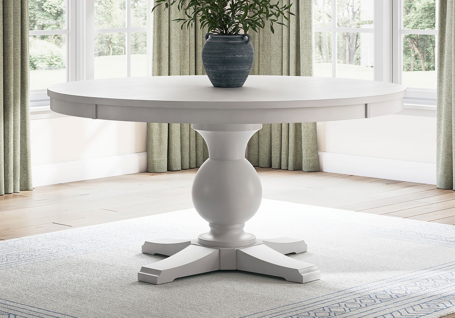Relaxed living and cozy comfort—that’s what traditional farmhouse design is all about. And what better way to embrace your love of rustic country style than with this dining Series. Celebrating the beauty of simplicity, its thick antiqued white top and hearty pedestal base marry functionality with classic appeal for a fresh feel. This piece effortlessly pairs with assorted chairs in the collection for an eclectic look.