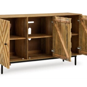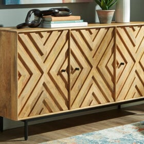 Your search for simple, chic design ends here. A versatile stunner, this accent cabinet adds a sophisticated aesthetic with diamond-patterned drawer fronts and a warm natural finish. It’s gorgeous and ready to serve as a buffet or console.