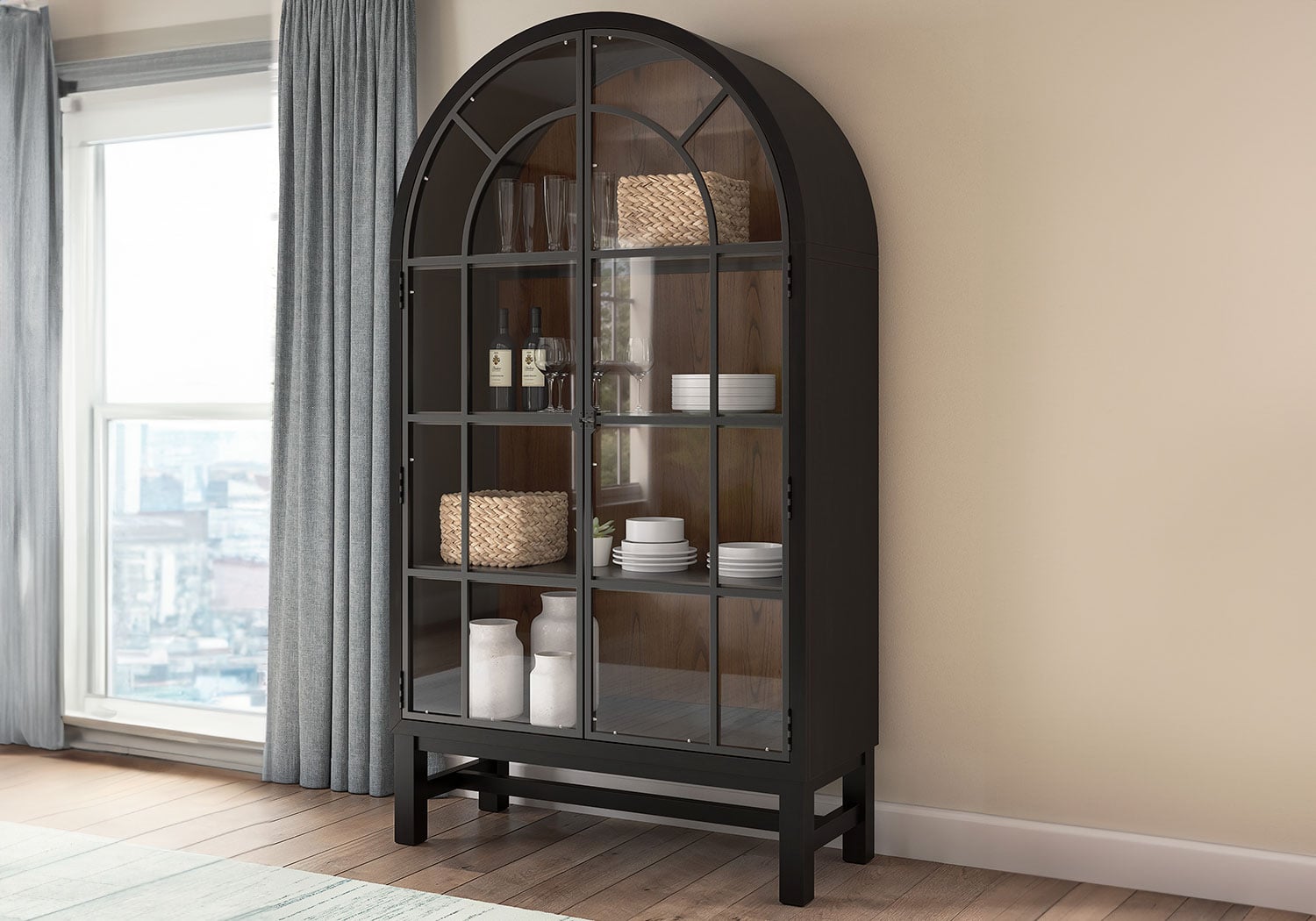 Relaxed living and cozy comfort—that’s what traditional farmhouse design is all about. And what better way to embrace your love of rustic country style than with this display cabinet. Celebrating the beauty of simplicity, its tall arched doors and ample shelves marry functionality with classic appeal for a fresh feel.