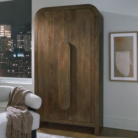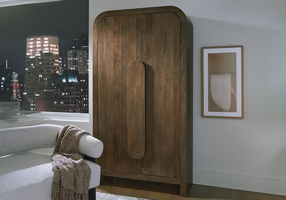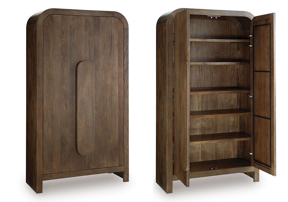 Indulge in functional elegance with this accent cabinet. It showcases the natural beauty of mango wood, with gracefully rounded corners creating a softened, welcoming profile. A medium brown finish brings an air of warmth and authenticity to your living space. And behind two soft-close doors, an assortment of shelves offers versatile storage.