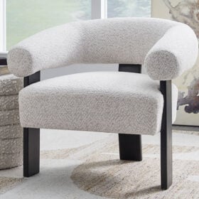 Almost sculptural in design, this accent chair is a standout addition to your seating area. Its artistic form speaks to your eye for unique contemporary design, while the ultra-soft fabric encourages an indulgent lounging experience. In contrasting black and white hues, the trend-forward chair can coexist expertly with existing pieces. Now that’s style to aspire to.