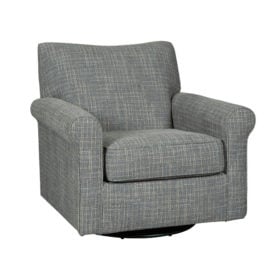 Sporting a tantalizing tweed weave fabric in such a soothing blue hue, this swivel glider accent chair gives the classic roll arm chair a modern twist. Smooth, 360-degree swivel caters to your comfort—and your viewing pleasure. Gentle glider feature is designed to rock your cares away.