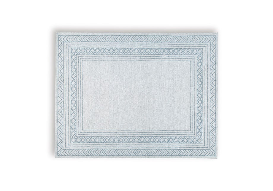 Soft, serene style. This area rug combines the comfort of hand tufted wool with the soothing feel of coastal casual aesthetics. Its detailed border design, in a palette of blue, ivory and gray, welcomes with relaxed character.