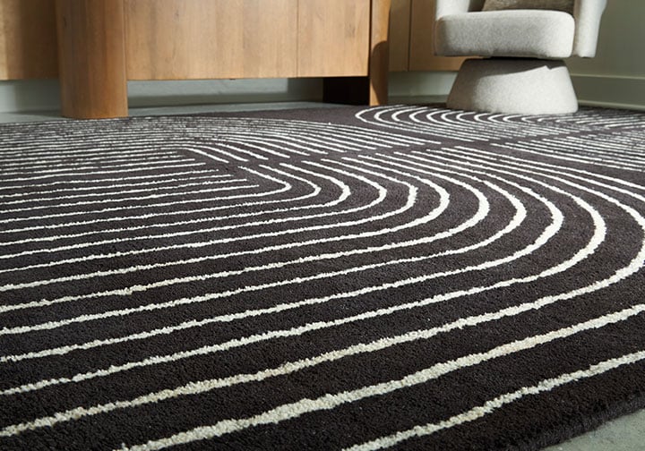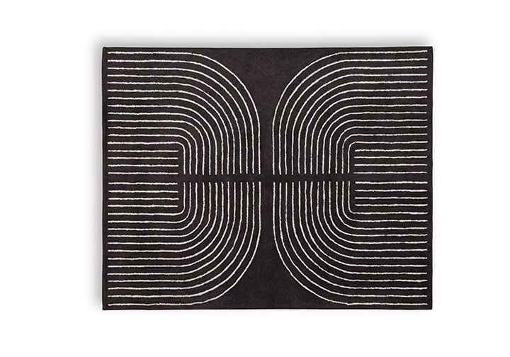Rocking a stylish geometric design, this elegant area rug knows how to make a statement. Its black and ivory pattern offers a welcome complement underfoot that doesn’t overtake your room’s design. You’ll love how the rug adds a contemporary touch under a couch or bed.