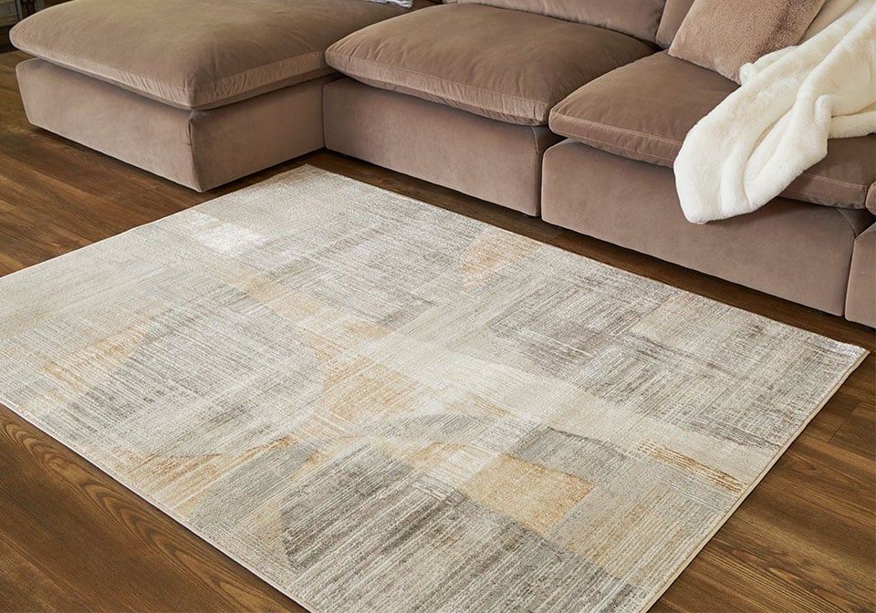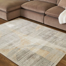 This abstract rug is crafted to captivate. Its interplay of linen, gray and caramel hues creates a chic masterpiece suited to both modern minimalist and warm traditional aesthetics. With its chic character, this rug anchors your space with sophistication and style.