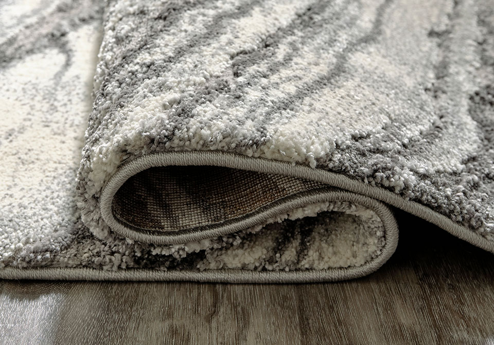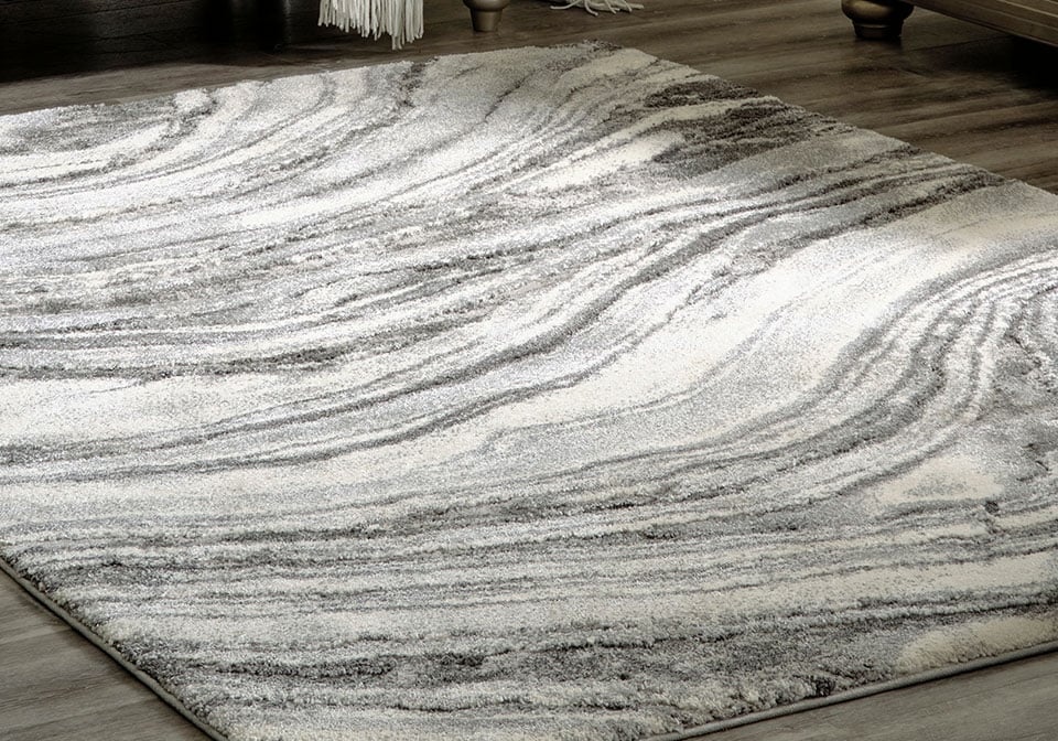 Inspired by gorgeous quartz bands of agate, this area rug displays flowing ribbons of color. Its machine-woven high-low agate design, in ivory and shades of gray, features deep, rich hues while maintaining exceptional durability. Comfortable and sophisticated, this accent rug is the ultimate accessory for your contemporary living space.