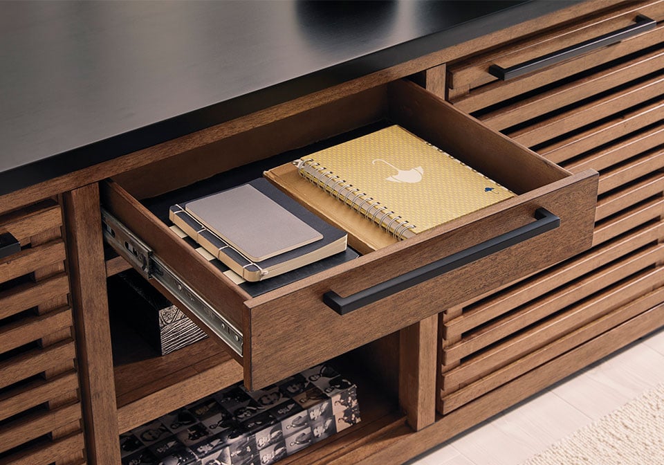 This home office desk return is made with hardwood solids, mango wood veneer and MDF substrates. Pairs with other items to make a credenza with desk return.