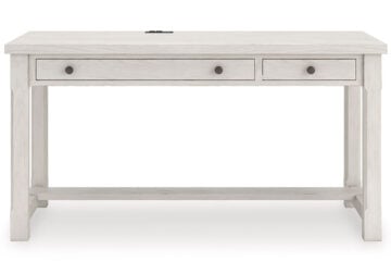 Make a style statement with this home office desk. Its traditional design is updated with an on trend distressed whitewash finish. The desk’s large tabletop makes for a well-organized workspace.