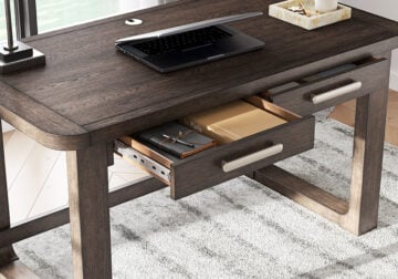 A refreshed take on retro aesthetics. This home office desk adds an air of playful simplicity to your workspace, capturing the architectural language of mid-century stylings. Subtle in design, it invites the eye with a sleek, open frame. A casual, yet timeless, finish and three storage drawers complete this study in form and function.