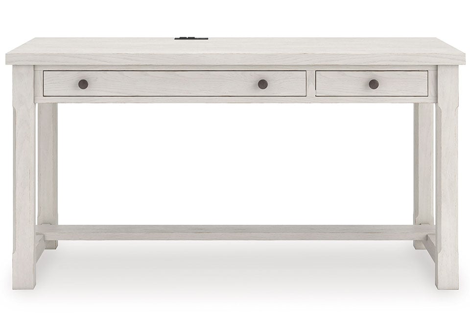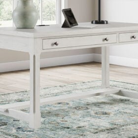 This home office desk is sure to impress when it’s time to study or work from home. With its antiqued white finish and wood grain texture, modern farmhouse-style workstations have never been so fashionable. A wide keyboard drawer and convenient USB charging bring function galore to your at-home office. Use this piece as a stand-alone work area, or pair it with the matching desk return (sold separately) to expand your workspace. All that’s missing is you.