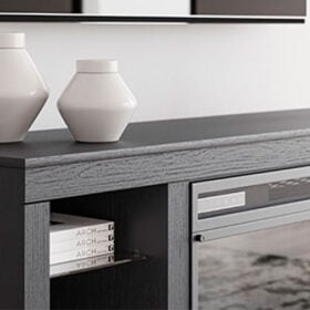Level up your gaming experience and make movie nights to remember. This TV stand with electric fireplace extends your entertainment beyond the screen. Its built-in fireplace brings the heat, synchronizing with LED backlighting on the shelves. And you can customize the vibe with trendy color options: red, green, blue and magenta. Modern function. Captivating, cool style. With this TV stand, revamp your home’s recreational hub like never before.
