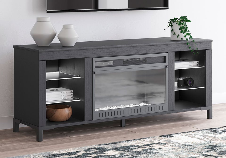 Cayberry Black TV Stand w/ Fireplace