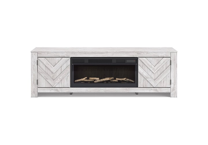 Cayboni Whitewash TV Stand w/ Fireplace
