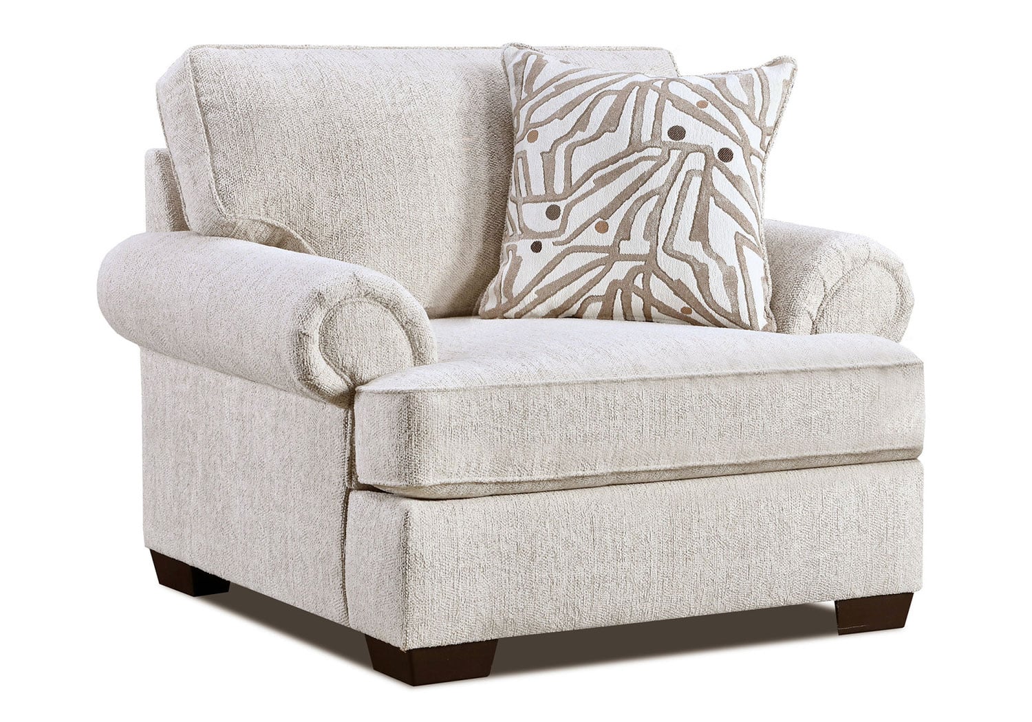 Plush supportive cushions, soft textured upholstery, coordinating accents, durable frame, spacious seating, clean modern lines, neutral tones, & low-profile legs.