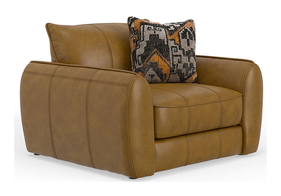 Genuine leather typically covers inside areas such as the back, seat and arm cushions; skillfully matched faux leather covers the remaining areas. Due to its natural origin, real leather can show individual characteristics such as healed scars, growth marks, grain variation and shade variation. Natural variations make each hide unique and do not detract from the wearing qualities of leather. Comfort Coil Seating featuring Comfor-Gel. Crescent Arm Design featuring Jumbo Welt. Jumbo Welt Accents on Seats/Backs. Steel Tech Framing.