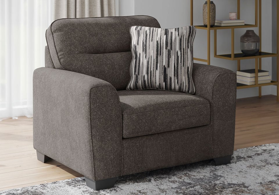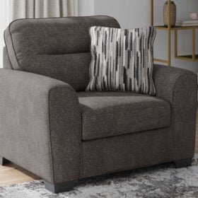 Strike a balance between the indulgent comfort you crave and the contemporary aesthetic you long for. The fabulously soft, graphite-colored upholstery of this oversized chair takes neutrals to new heights. Plus its large scale gives you plenty of room to spread out and relax solo or with your bestie. A geometric-patterned accent pillow perfects the richly on-trend aesthetic.