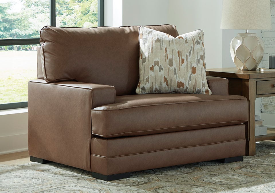 Simple and streamlined, this Series delivers a cozy yet contemporary vibe you’ll love as much as we do. Its extra-roomy size and supple caramel faux leather invite you—and your besties—to have a seat. This piece’s understated elegance and enduring comfort are perfect for entertaining or a relaxing night.