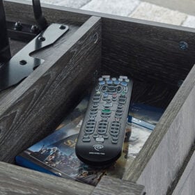 - Lift top design; hidden storage under lid