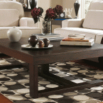 Constructed from hardwood solids and ash veneers. Clean design finished in dark brown stained finish. Over-scaled coffee table.
