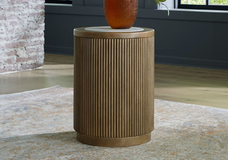 Elegance meets earthy charm in this end table. Crafting a contemporary living room? The faux Carrara marble top expertly pairs with the reeded base for a trend-right take on day-to-day function. It’s an ideal spot to rest remotes, a drink or small decorative accents.