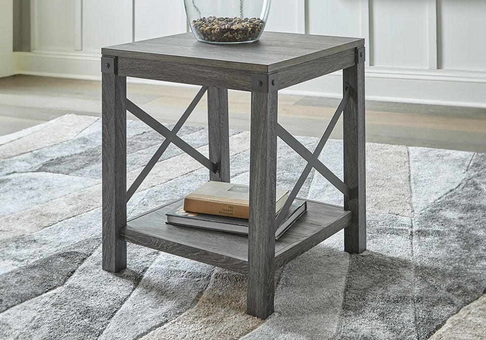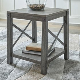Open the door to modern farmhouse style with this square end table. The beautiful woodgrain look and classic crossbuck metal accents are a cool touch, while the lower shelf provides surface space for fashionable home accessories.