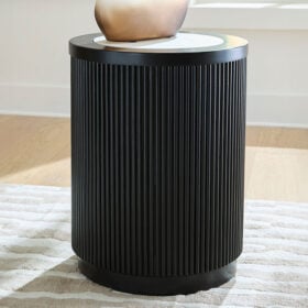 Elegance meets earthy charm in this end table. Crafting a contemporary living room? The faux Carrara marble top expertly pairs with the reeded base for a trend-right take on day-to-day function. It’s an ideal spot to rest remotes, a drink or small decorative accents.