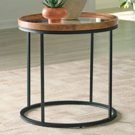 Looking for modern style without the designer price tag? You’ll love the Noraluna occasional set. A sleek metal base pairs effortlessly with a warm wood-trimmed top and glass insert, creating a clean, balanced look that’s durable, versatile, and easy to live with in any space