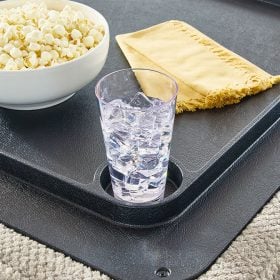 This ottoman with storage caters to your need for contemporary comfort. It’s decked out in feel-good fabric in a versatile hue. The family-friendly ottoman is ideal for hosts with the most, with easy-to-access storage space that keeps throw blankets on hand. Flip the lid to reveal cup holders and make refreshments all the more reachable. Quality time has never been so cozy.
