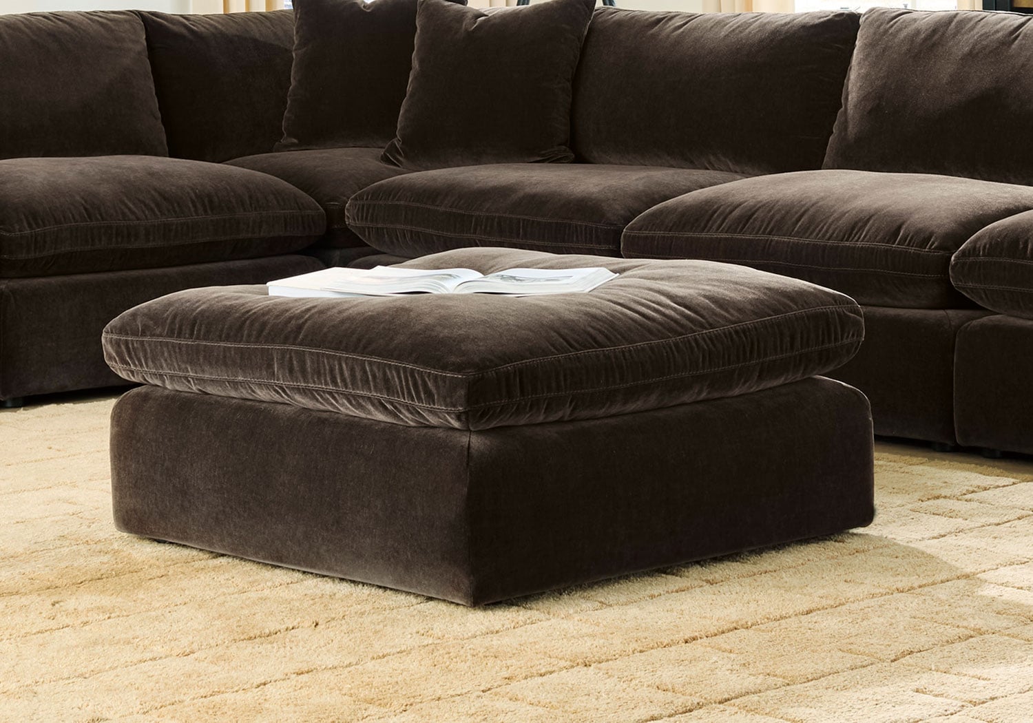 Style that elevates the everyday—without compromise. This ottoman combines a sleek silhouette with a plush top for an all-around contemporary vibe. Complete with velvet fabric, this piece reflects your confidently curated aesthetic.