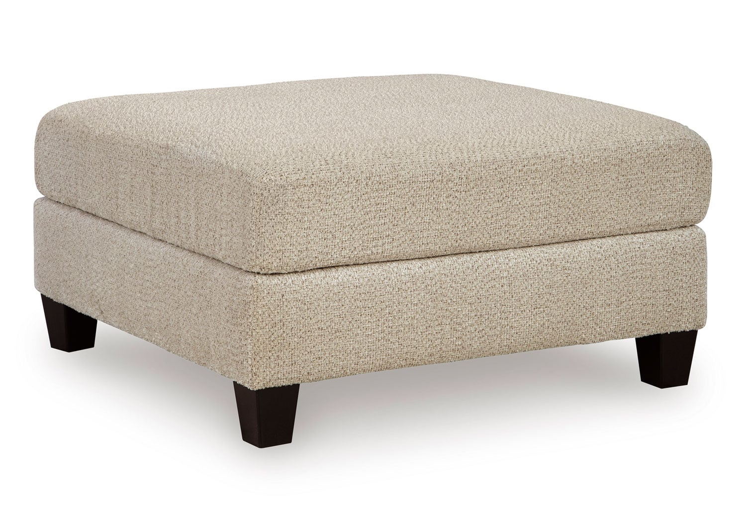 This oversized accent ottoman incorporates a fresh, transitional feel into your decor. A generously padded cushion and super-soft chenille fabric in a versatile neutral invite you to kick back and relax. Finished with tapered legs, this ottoman effortlessly suits casual spaces.