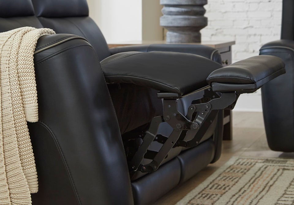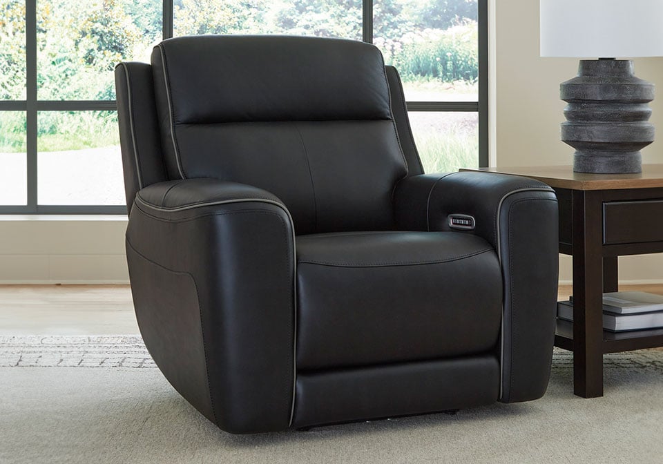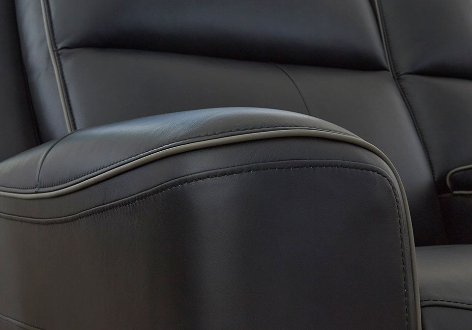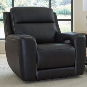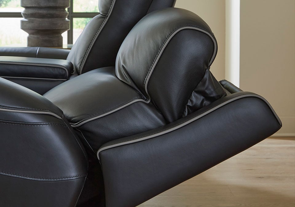 Relax like never before. This power recliner is crafted with luxury in mind, complete with supple top-grain leather in the seating area. With chic tailoring and stylish welting, it creates a sophisticated presence and makes a lasting impression. And when you’re ready to be pampered, indulge in the recliner’s adjustable headrests, heated seats and air massage, all at the touch of a button. Chill time just got a whole lot sweeter.