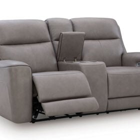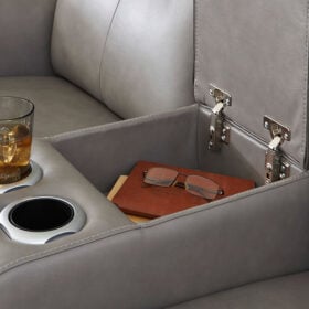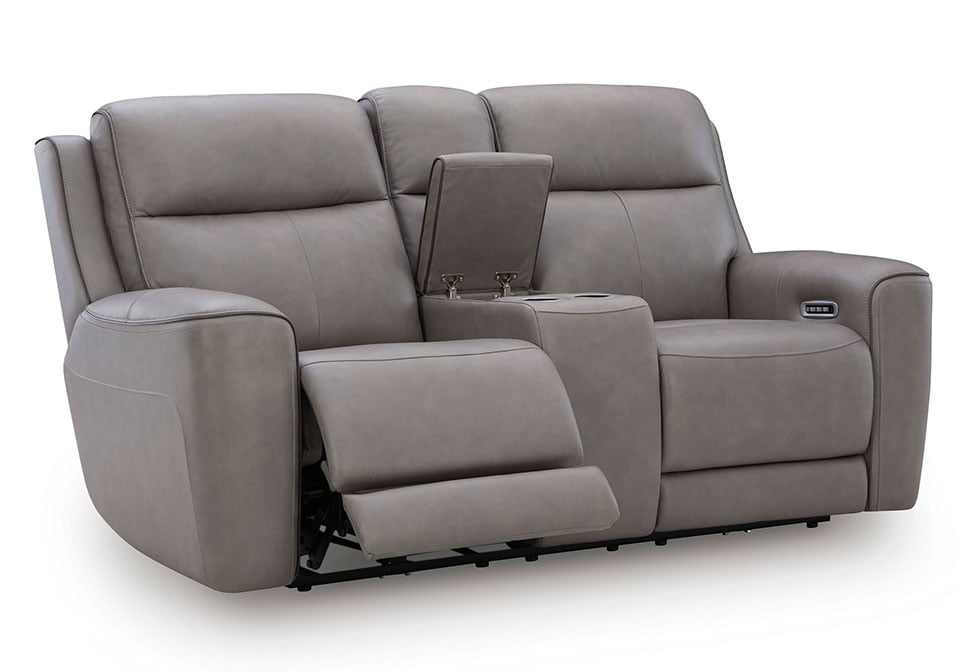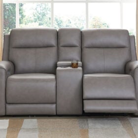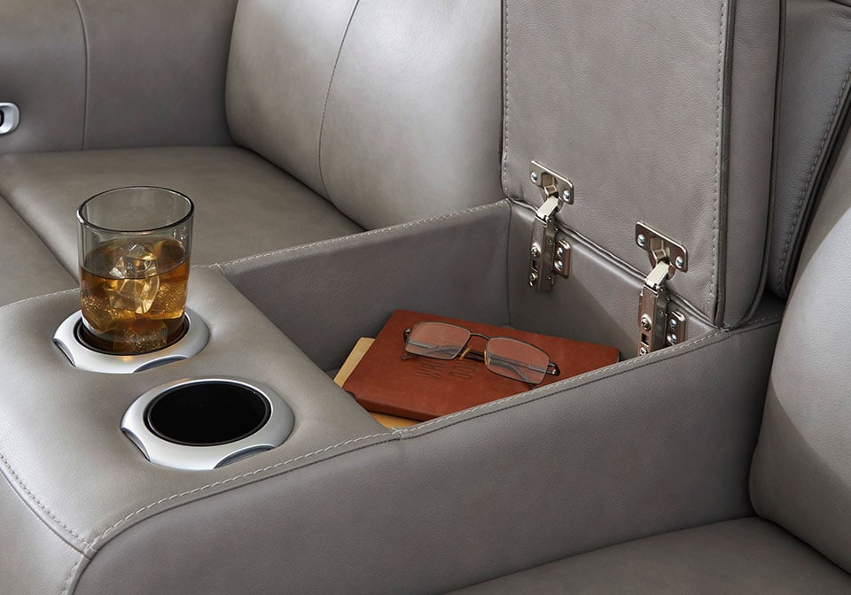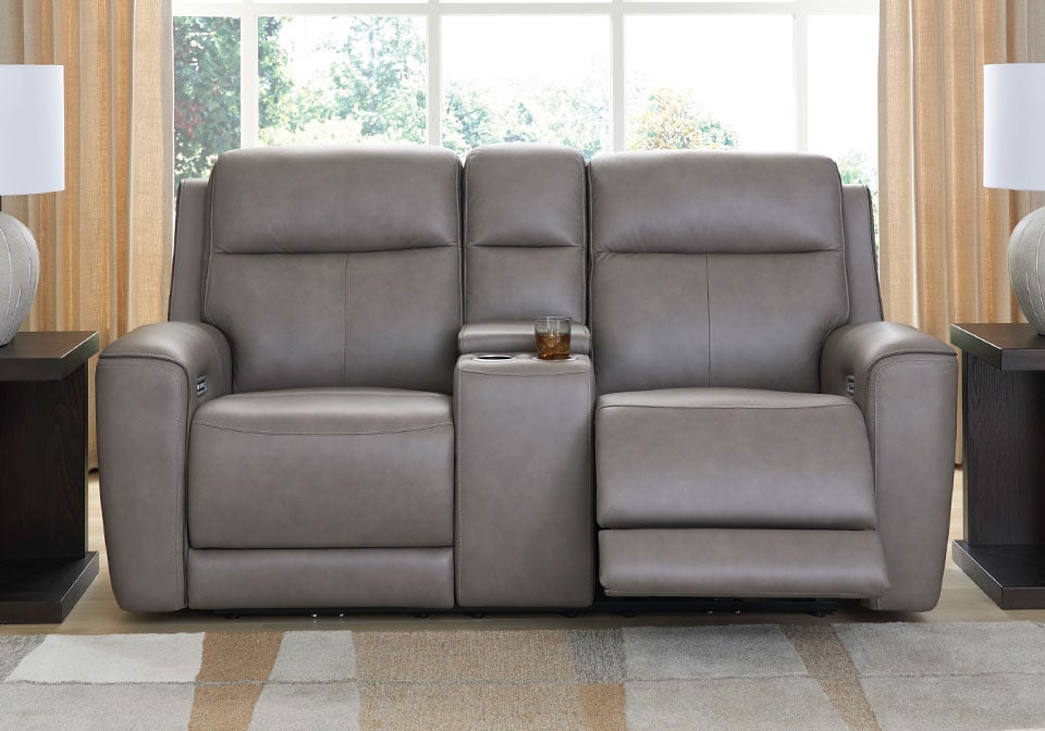 Relax like never before. This power reclining Series is crafted with luxury in mind, complete with supple top-grain leather in the seating area. With chic tailoring and stylish welting, it creates a sophisticated presence and makes a lasting impression. When you’re ready to be pampered, indulge in the adjustable headrests, heated seats and air massage, all at the touch of a button. And did we mention the loveseat’s console with storage and dual cup holders? Chill time just got a whole lot sweeter.