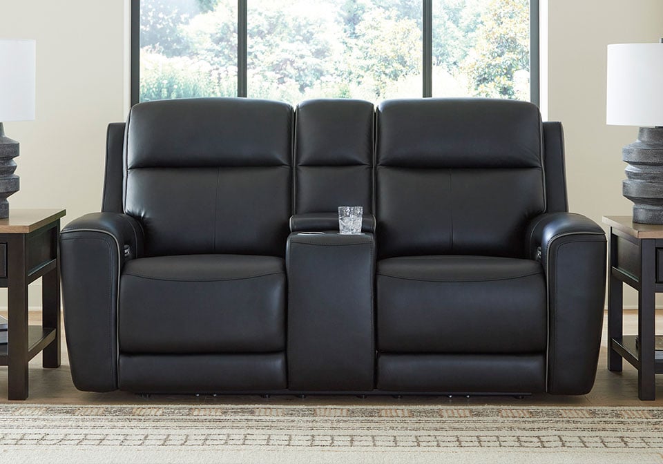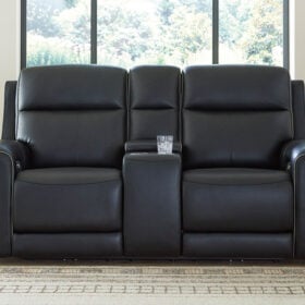Relax like never before. This power reclining Series is crafted with luxury in mind, complete with supple top-grain leather in the seating area. With chic tailoring and stylish welting, it creates a sophisticated presence and makes a lasting impression. When you’re ready to be pampered, indulge in the adjustable headrests, heated seats and air massage, all at the touch of a button. And did we mention the loveseat’s console with storage and dual cup holders? Chill time just got a whole lot sweeter.