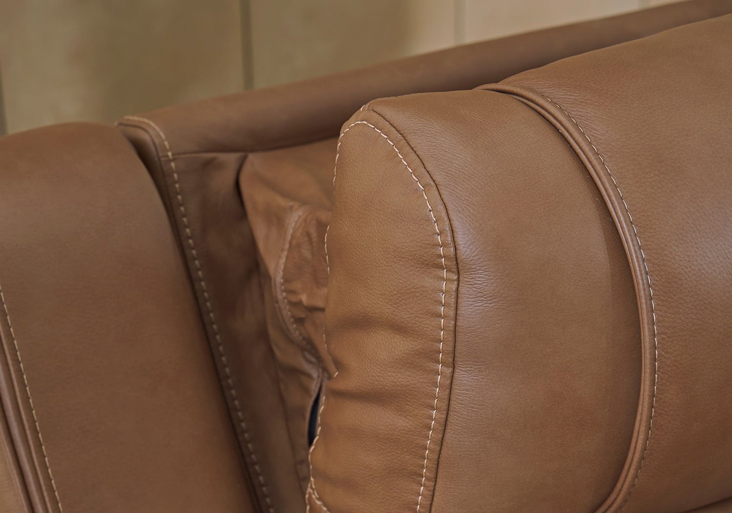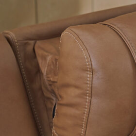 - 100% top grain leather covers inside areas such as the back, seat and arm cushions; skillfully matched faux leather covers the remaining areas