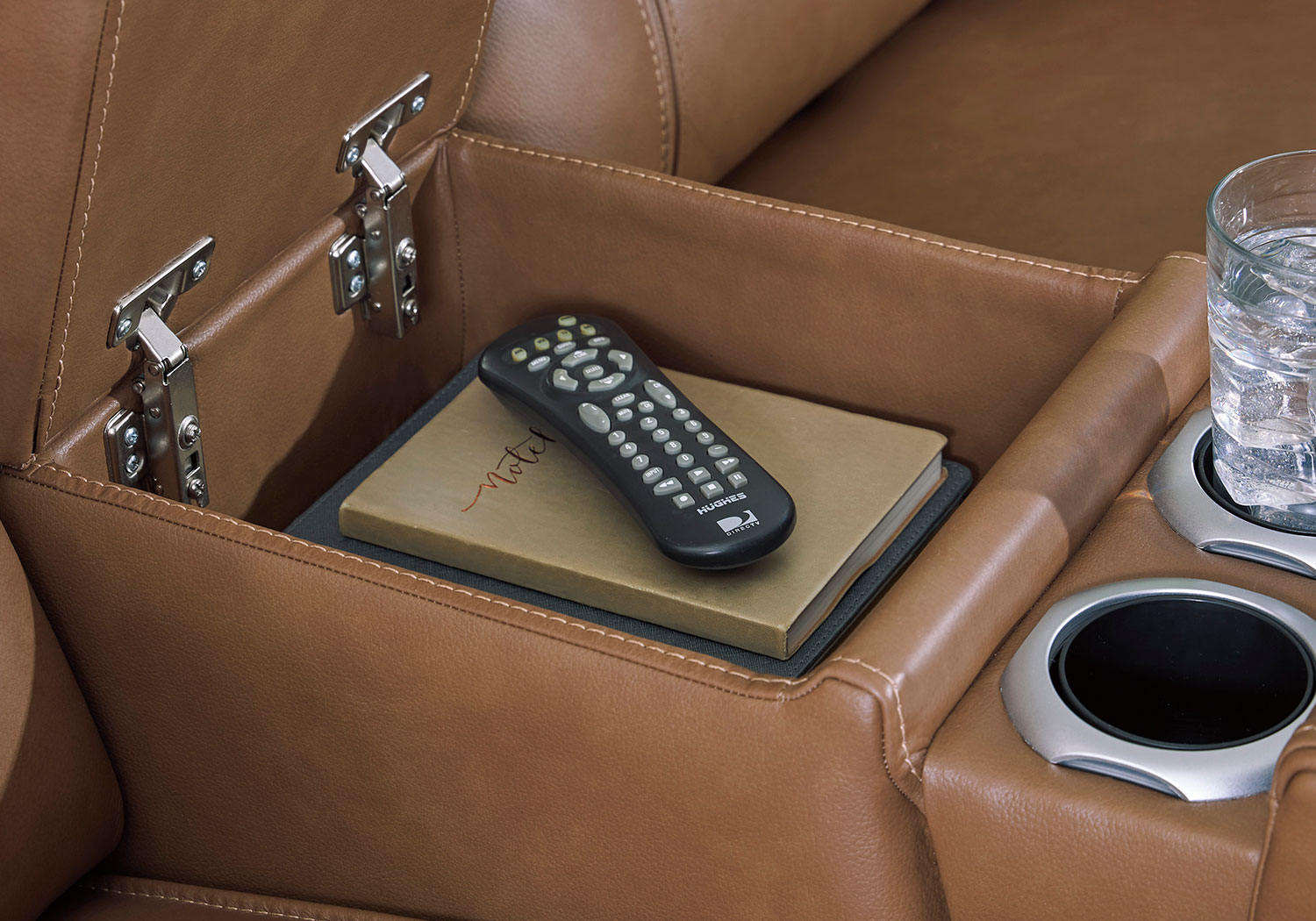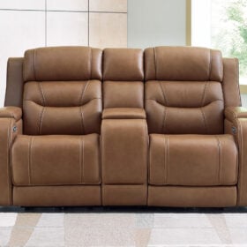 Knightington Caramel Power Reclining Love Seat Console