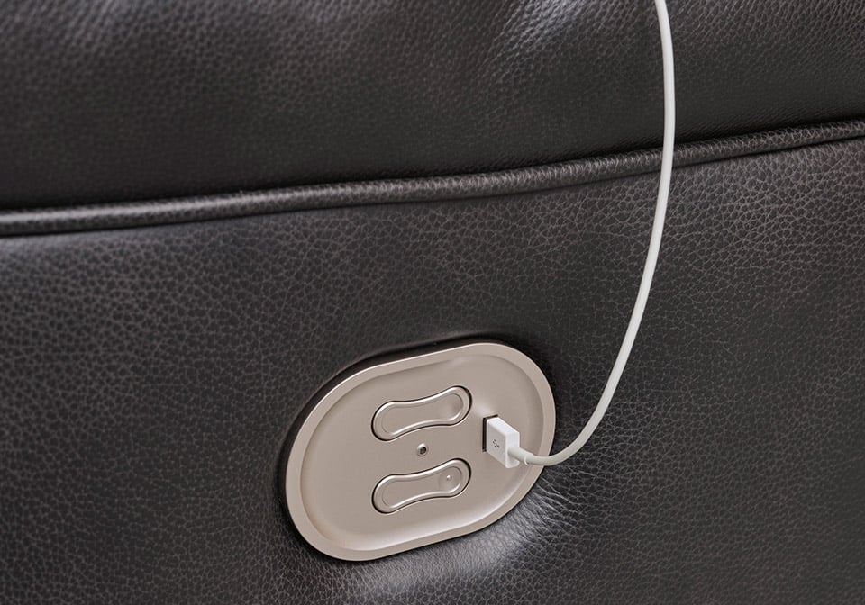 One-touch power control with adjustable positions, Easy View™ adjustable headrest and zero-draw USB port. Zero-draw technology only consumes power when the USB receptacle is in use. Zero-gravity mechanism allows optimum reclining comfort with infinite reclining positions at the touch of a button. Corner-blocked frame with metal reinforced seat. Attached cushions. High-quality foam cushions wrapped in poly fiber. Genuine leather covers inside areas such as the back, seat and arm cushions; skillfully matched faux leather covers the remaining areas. Due to its natural origin, real leather can show individual characteristics such as healed scars, growth marks, grain variation and shade variation. Natural variations make each hide unique and do not detract from the wearing qualities of leather. Zero wall recliner design requires minimal space between wall and chair back.