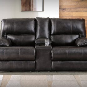 Striking form, meet contemporary function. This power reclining Series combines your ideal comfort features, like one-touch reclining and adjustable headrests, into one sophisticated package. With a design defined by the luxe look of black leather, this Series pairs beautifully with your uncompromisingly posh aesthetic.