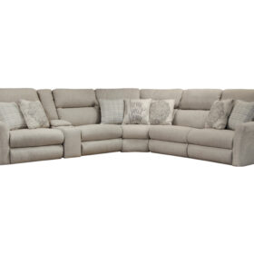Recline in comfort with this sectional, which includes everything you need for a relaxing movie night, or cozying up with a good book and a drink. This reclining sectional includes lay-flat capabilities and a console with cupholders and a storage compartment.