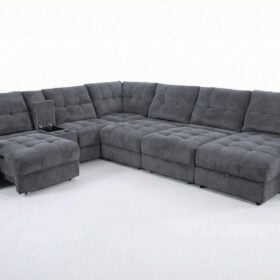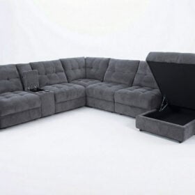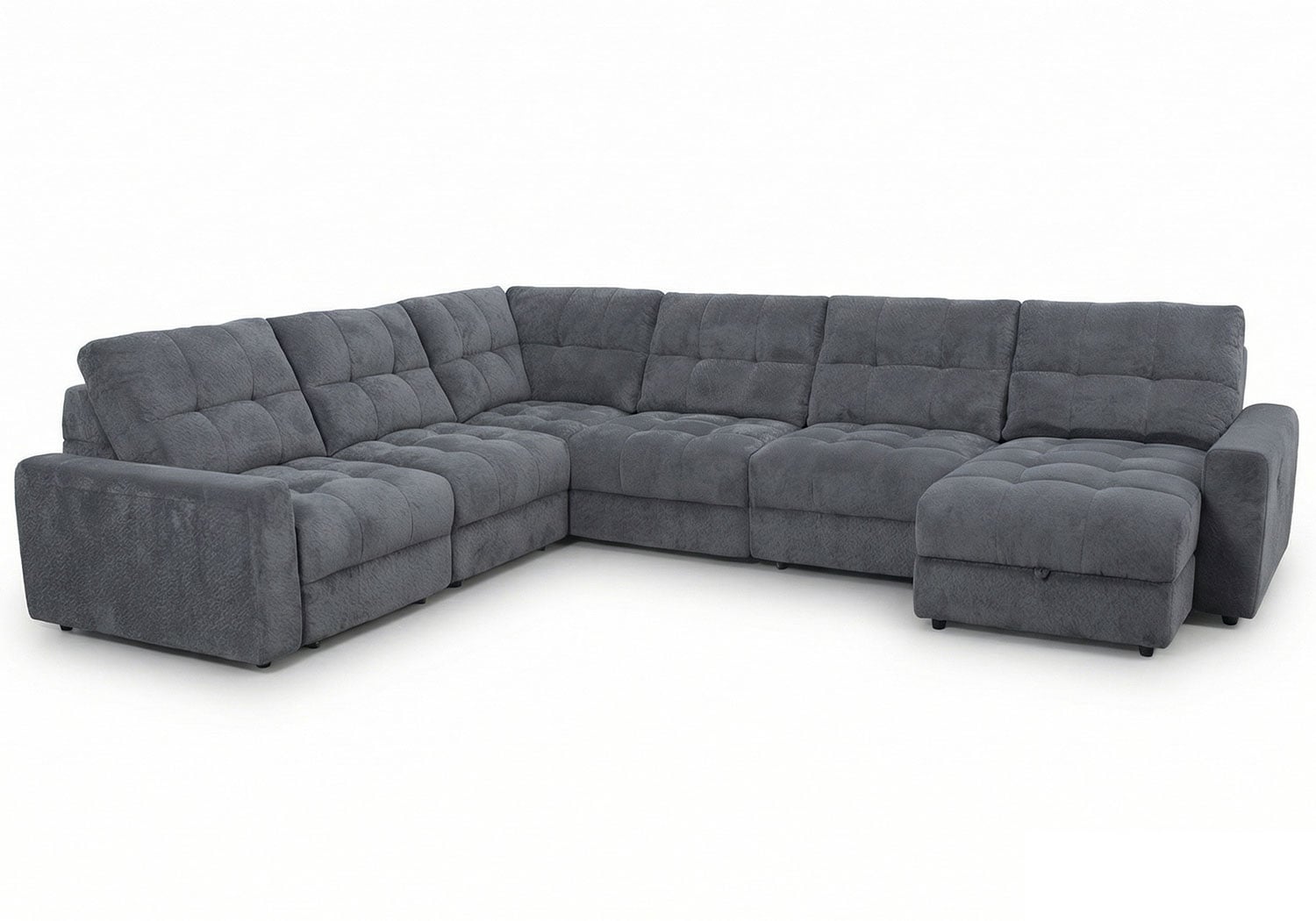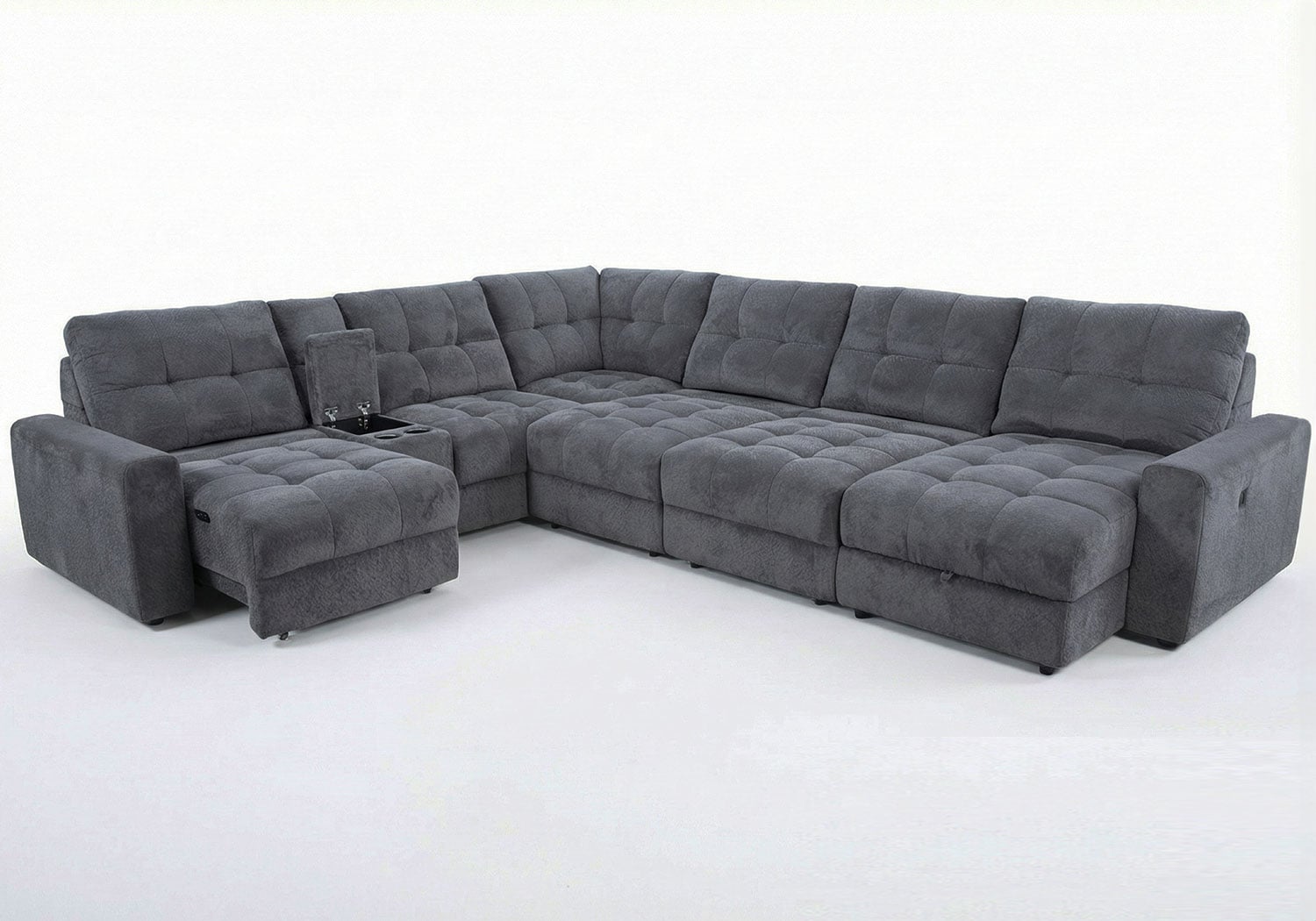 Experience ultimate versatility with this power sliding sectional, featuring a left arm facing sliding chaise, two armless chaises, and right side storage chaise. Plush tufted cushions, & integrated console with USB. Comfort delivered in a modern style and relaxation for everyone.