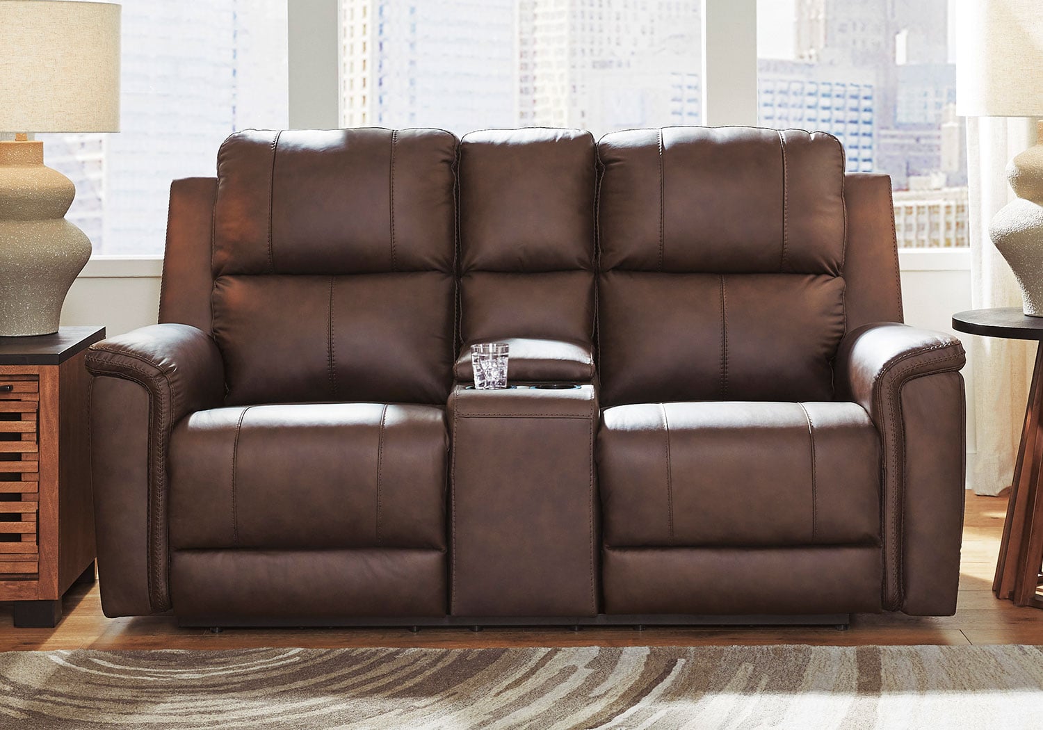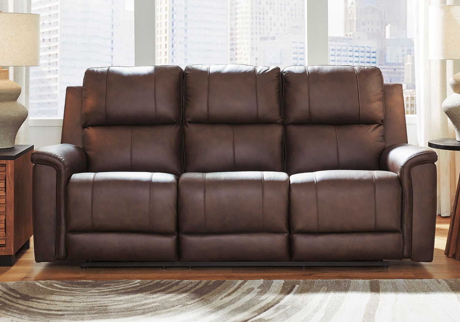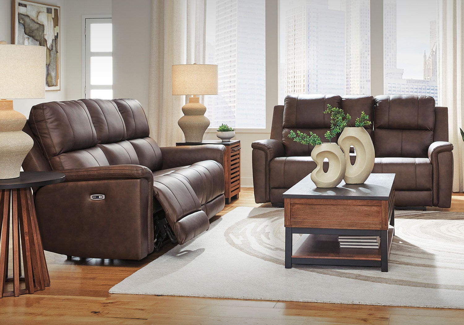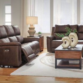 Are you ready to experience next-level relaxation? This power reclining sofa set combines supple leather and faux leather upholstery with smart features that make unwinding effortless. With just one touch, you can adjust your position while the power headrest keeps you perfectly aligned for reading or binge-watching your favorite shows. The Zero³ reclining requires minimal space between wall and chair back while delivering fully supported, fully reclined comfort at the touch of a button. Thoughtfully designed with sculptural padded arms and built-in USB charging, this spacious piece will be your new favorite spot to recharge—both yourself and your devices. And how about those handy cup holders?