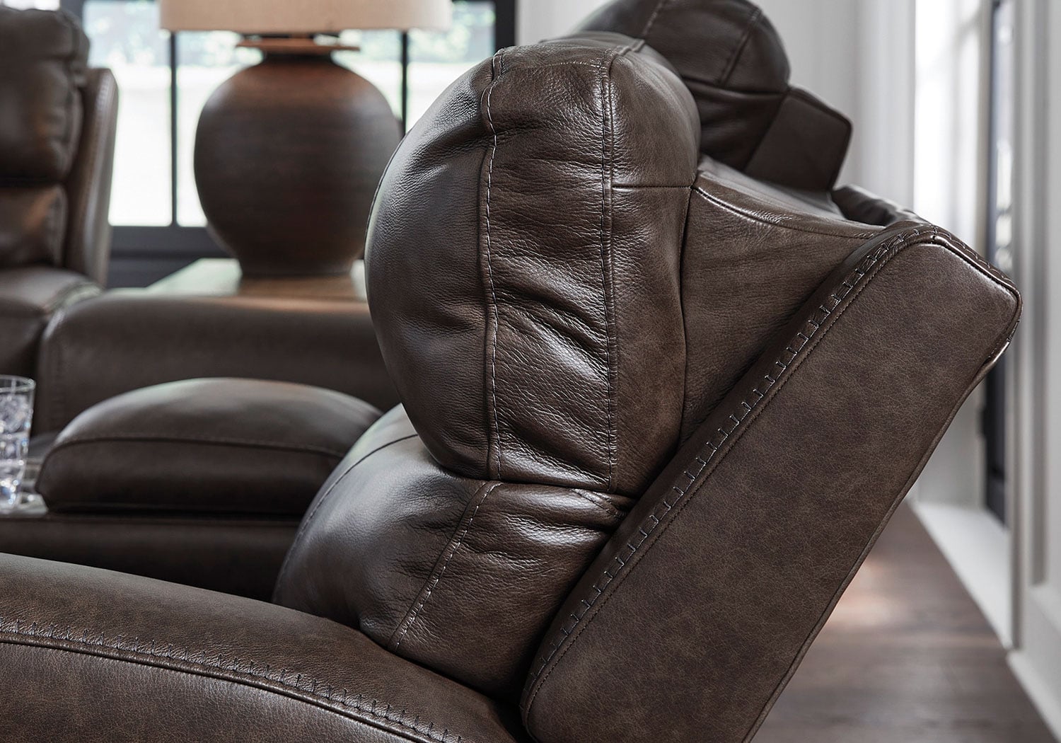 Versatile style teams up with everyday convenience to create this power reclining sofa set. Settle into the sleek leather seating area and effortlessly recline with one-touch controls. Need some extra ambiance? Wireless speakers in the drop-down table make entertainment more immersive. And with the addition of USB charging, you can keep go-to devices close as you lounge. Outfitted in a goes-with-anything neutral hue, it’s the perfect blend of chic transitional aesthetics and modern function.