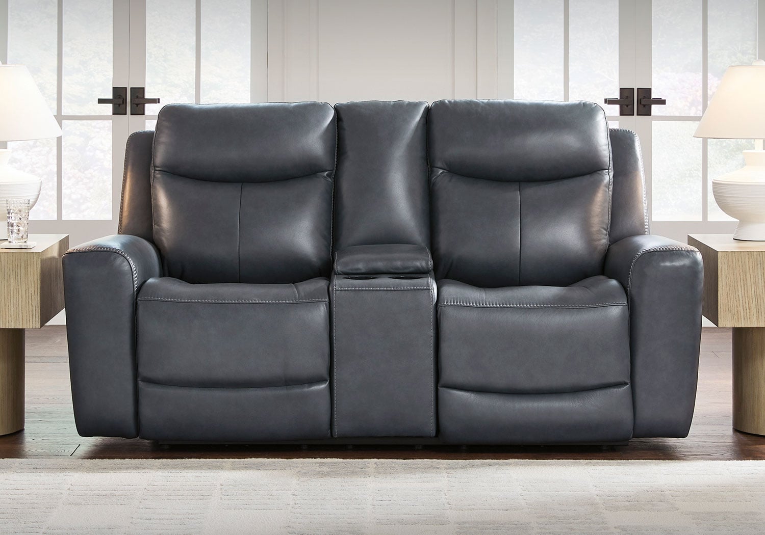 - Loveseat center console with 2 cup holders and hidden storage