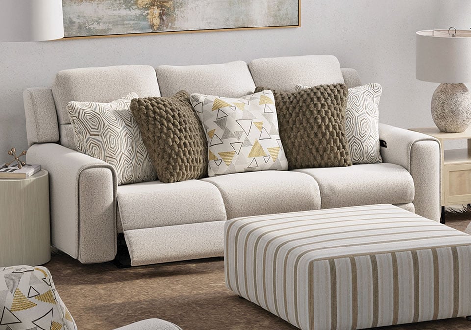 Transform your living space with this Series Collection, where modern style meets everyday comfort. Designed with power reclining options, this Series offers effortless relaxation and lasting support. Upholstered in soft, durable polyester in oatmeal color, this sofa brings a warm, inviting touch to any room. With clean lines, plush seating, and thoughtful functionality, this Series Collection is the perfect blend of contemporary design and cozy comfort.
